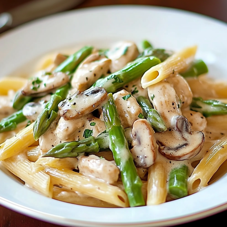 Amazing Creamy Mushroom and Asparagus Chicken Penne Delight