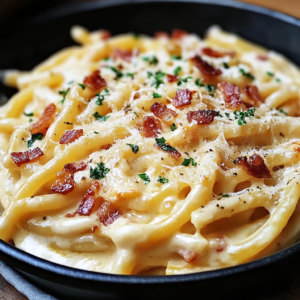 In summary, Creamy Bacon Cheese Pasta Bake is an indulgent comfort food that brings together pasta, crispy bacon, and a rich cheese sauce into one delightful casserole. It’s easy to prepare and highly customizable based on personal preferences or dietary needs. By following simple steps and using quality ingredients, you can create a dish that everyone will love. Whether it’s for a cozy family dinner or entertaining guests, this recipe is sure to impress!