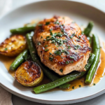 A delightful one-pan dish featuring tender chicken and fresh green beans enveloped in a savory sauce, perfect for busy weeknights or casual gatherings.