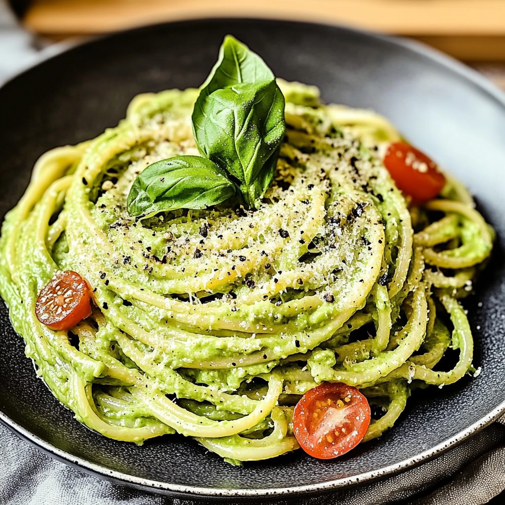 Indulge in this delightful creamy avocado pasta, featuring a rich, velvety sauce made from ripe avocados, zesty lemon, and aromatic garlic—perfect for any occasion!