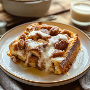 A warm, gooey delight that transforms cinnamon rolls into a cozy French toast casserole, perfect for holiday gatherings or weekend brunches.