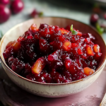 This vibrant relish blends tart cranberries, sweet apples, and zesty ginger, making it the perfect accompaniment for festive gatherings.