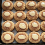 Yes, you can make Eggnog Snickerdoodle Thumbprint Cookies ahead of time. Prepare the dough and shape the cookies as instructed but leave out the filling. You can refrigerate the dough for up to two days before baking or freeze it for longer storage. When you’re ready to bake, simply thaw if frozen, bake the cookies as directed, and add the filling once they’ve cooled down. This makes them an excellent choice for holiday baking plans.