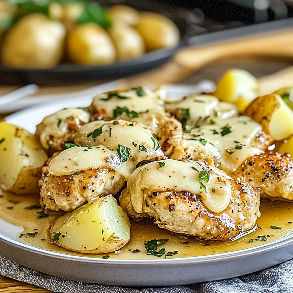 Garlic Parmesan Chicken and Potatoes is an easy yet satisfying dish that combines tender chicken with flavorful potatoes. The key ingredients include fresh garlic, rich Parmesan cheese, and olive oil that create a mouthwatering experience. Whether you’re cooking for family or friends, this recipe is sure to impress everyone at your table. Enjoy it with a light salad or some steamed veggies for a complete meal that balances flavors beautifully!