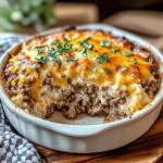 This Savory Ground Beef and Cauliflower Rice Casserole offers a nutritious twist on a classic comfort food dish. With its blend of seasoned ground beef and cauliflower rice, it’s both satisfying and healthy. Feel free to customize it by adding your favorite vegetables or spices for added flavor. Perfect for weeknight dinners or meal prep, this recipe proves that delicious meals can also be nourishing without compromising taste!