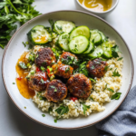 The tantalizing aroma of spicy Harissa chicken meatballs wafts through the kitchen, wrapping you in a warm embrace of flavor. Picture succulent meatballs, perfectly spiced and nestled on a fluffy bed of couscous, topped off with a refreshing cucumber herb salad that sings of summer. This dish is not just a meal; it’s an experience that dances on your taste buds and leaves you craving more.