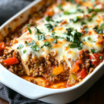 Savor the comforting blend of ground beef, vibrant bell peppers, and aromatic spices in this easy-to-make casserole—perfect for busy weeknight dinners.