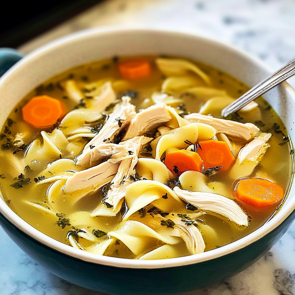 Warm up with this comforting chicken noodle soup, brimming with tender chicken, fresh vegetables, and hearty noodles—a perfect remedy for chilly days.